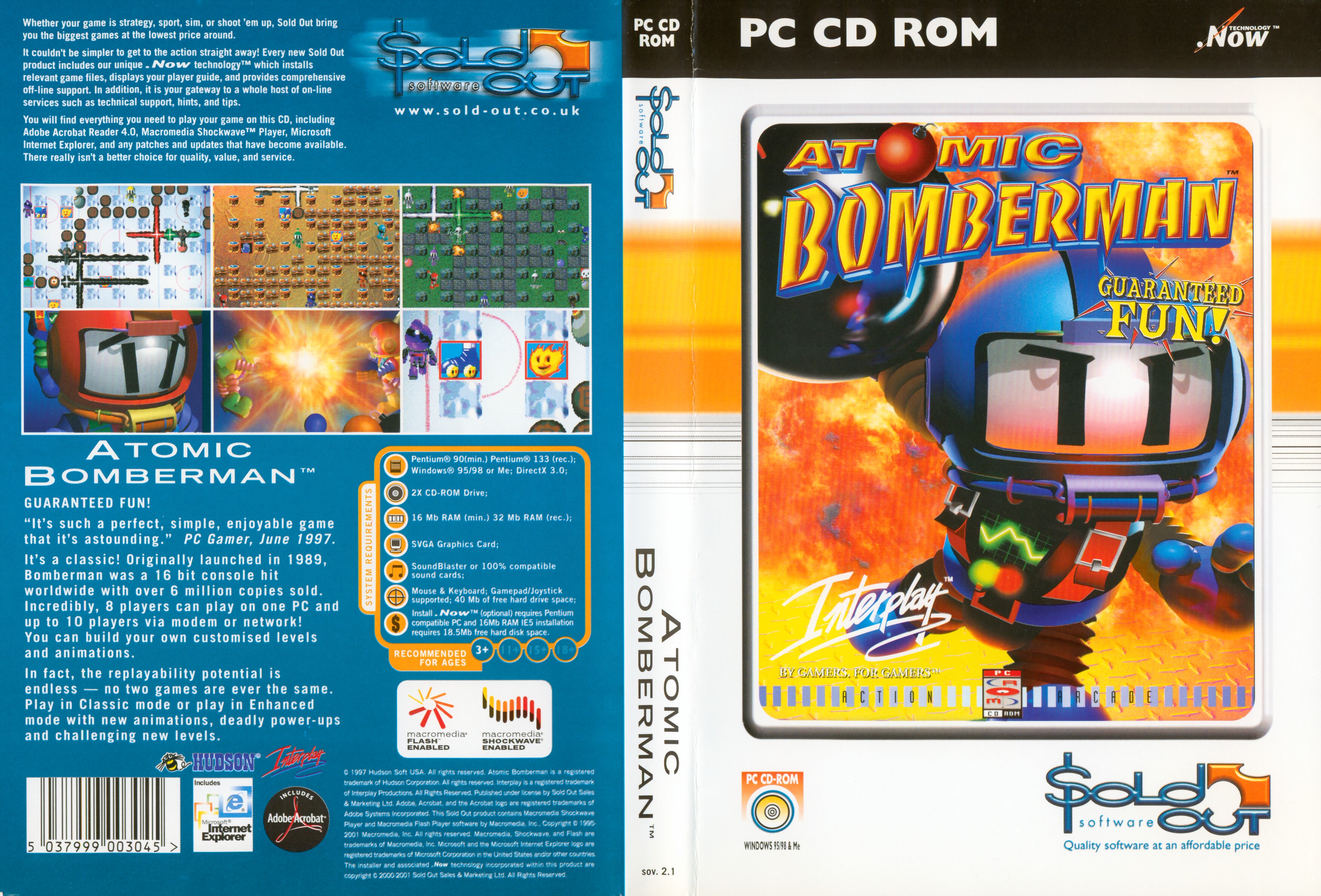 It's a classic! Originally launched in 1989, Bomberman was a 16 bit console hit worldwide with over 6 million copies sold. Incredibly, 8 players can play on one PC and up to 10 players via modem or network! You can build your own customised levels and animations.